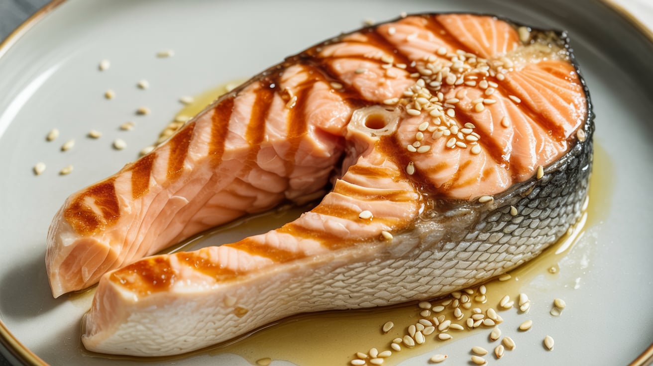 Состав: стейк лосося, масло растительное, кунжут