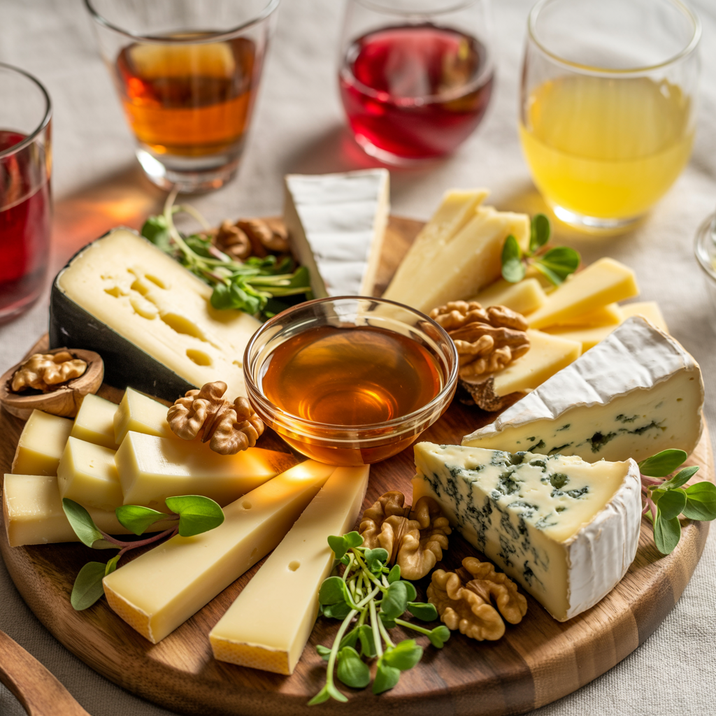 Состав: сыры премиум, грецкий орех, мед, соки в ассортименте, зелень